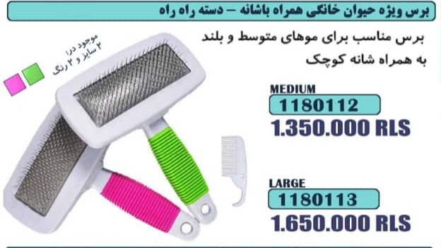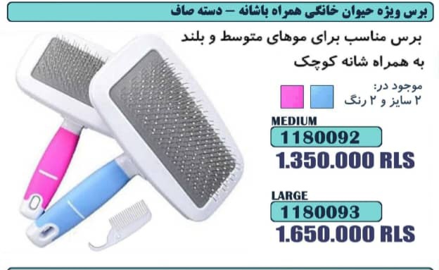 ناموجودبرس حیوانات خانگی به همراه شانه کوچک و دسته راه راه