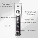 دستكاه پيرايش حرفه اى داراى تيغه هايى از جنس تيتانيوم و سراميک براى استفاده طولانى و مكرر ، مناسب براى آرايشگر ها