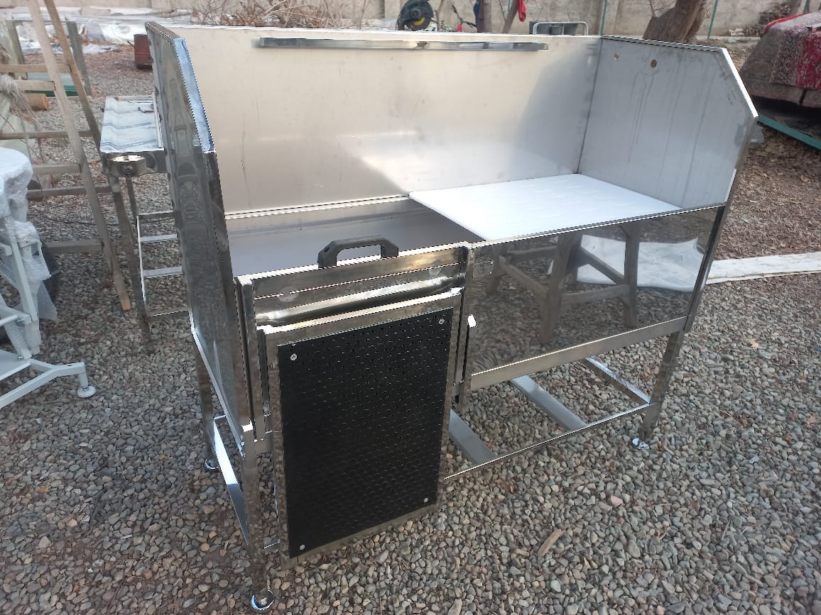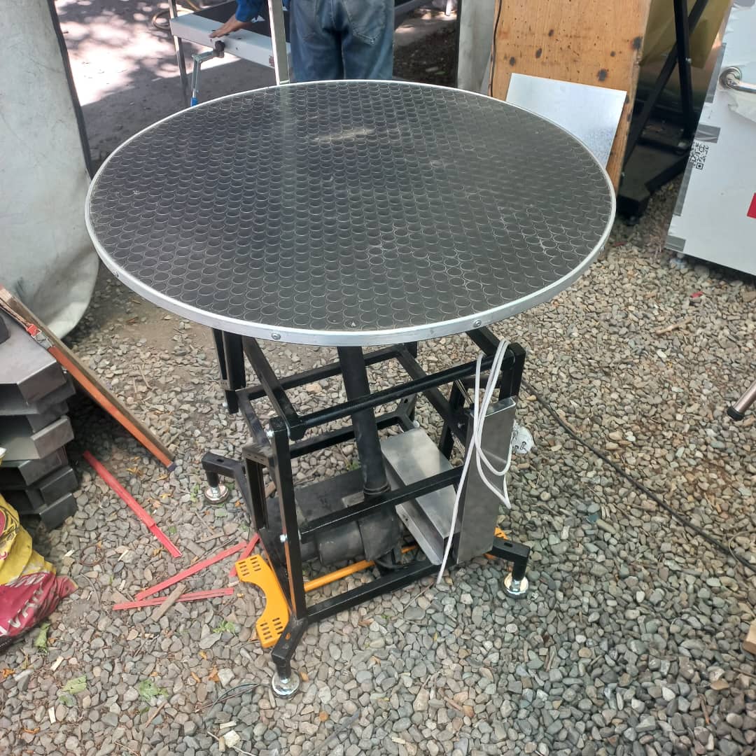 میز گرومینگ صفحه گرد ۷۵ سانت با لیفت برقی و گارد مهار استیل
